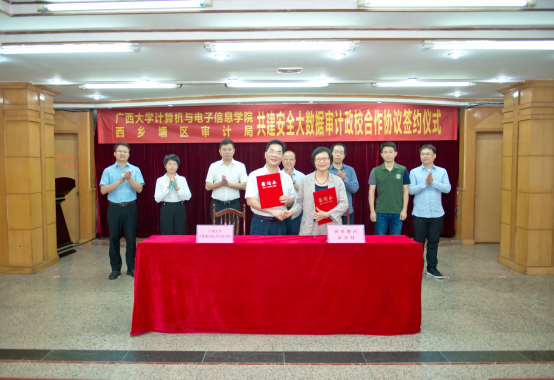 2022年5月12日,太阳成集团tyc7111cc和南宁市西乡塘区审计局在西乡塘区政府办公楼,举行“太阳成集团tyc7111cc与南宁市西乡塘区审计局安全大数据审计政学合作框架协议”签约仪式暨交流座谈会。
