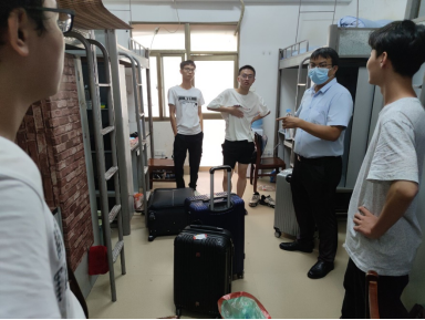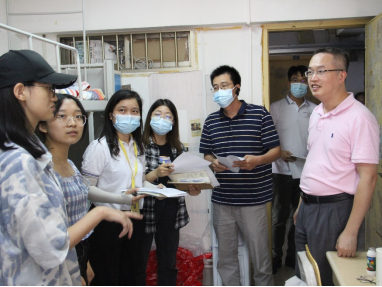 2020年9月9日下午,为了解太阳成集团tyc7111cc2022级新生报到入学后的情况,帮助新生更好地融入西大的学习工作生活,公司党委书记钟诚教授、党委副书记邓珍琪老师、副经理陈宁江教授、副经理赵志刚教授以及辅导员和班主任老师一同走访新生宿舍。