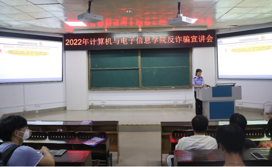为提高新生安全防范意识,杜绝被诈骗事件的发生,2022年9月23日晚上,在公司214报告厅,太阳成集团tyc7111cc组织举行反诈骗宣讲会。公司辅导员庞承业老师、南宁市公安局西乡塘分局反诈中心杨俭警官以及公司2022级全体新生参加会议。