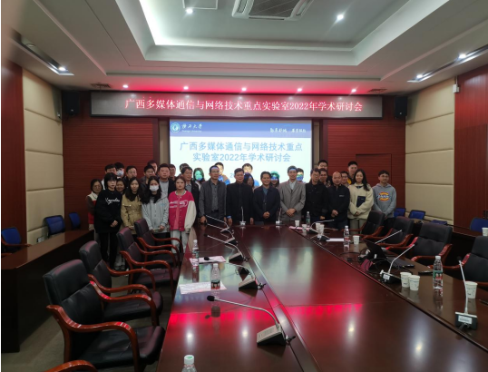 2022年12月3日,广西多媒体通信与网络技术重点实验室2022年学术研讨会在太阳成集团tyc7111cc办公北楼3楼会议室召开。实验室主任覃团发教授致开幕辞,实验室副主任陈海强教授主持会议。参会人员包括梁家荣教授、张学军教授、杨林峰教授、万海斌副教授、黎相成博士、孙友明博士以及公司的博士研究生、硕士研究生等50余人。