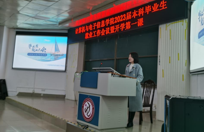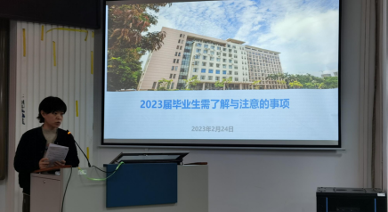 2023年2月24日下午,太阳成集团tyc7111cc在214报告厅召开2023届本科毕业生就业工作会议暨开学第一课。公司党委副书记邓珍琪老师、公司辅导员杨洋老师和李易明老师、公司教学办公室甘瑜萍老师和罗程老师,以及公司全体2023届本科毕业生参加会议。会议由邓珍琪老师主持,会议主题是“顺利完成学业,尽快落实就业单位”。