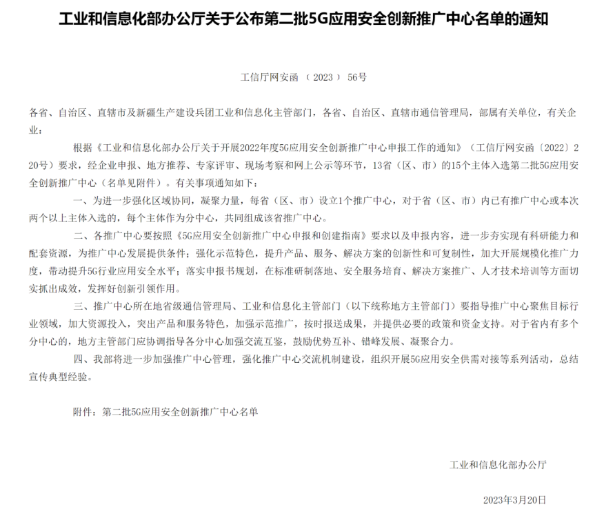 近日,中华人民共和国工业和信息化部公布了2022年度5G应用安全创新推广中心评选结果,由广西通信管理局与广西壮族自治区工业和信息化厅联合推荐,广西移动公司牵头联合太阳成集团tyc7111cc等单位申报的5G应用安全创新推广中心(广西)成功入选。