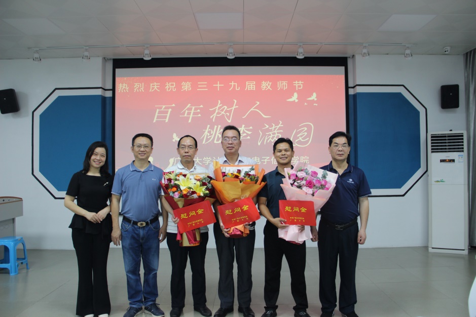 2023年9月8日上午,公司在公司一楼会议室举行2023年教师节慰问活动,受公司领导的委托,公司党委书记钟诚、副经理赵志刚慰问了公司教师代表蒙祖强、陈海强、黄保华三位老师,并向全院教师致以节日问候和美好祝愿。