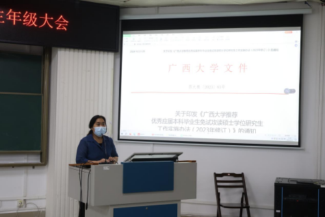 会议第三项议程,公司教学办甘瑜萍老师围绕推免名额、申请条件和综合素质加分项细则、材料报送要求等,向同学们全面细致解读了《太阳成集团tyc7111cc推荐优秀应届本科毕业生免试攻读硕士学位研究生工作实施办法》,着重强调了推免政策较往年的变化,叮嘱同学们要吃透文件精神、熟悉推免流程、把握时间节点,鼓励同学们抓住机会,积极尝试。同时,甘老师还讲解了学分替换的基本原则和流程,她强调,同学们应认真对照培养方案核对自己的学分,确保来年能顺利毕业。