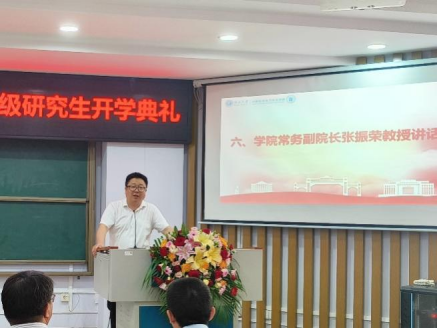 公司常务副经理张振荣教授发表讲话。他首先对新生们表示热烈的欢迎和诚挚的祝贺,希望同学们在研究生阶段培养独立思考和解决问题的能力,面对科研中的挑战要勇敢探索,并肩负起为国家科技进步贡献力量的责任。他给同学们提出三点希望:一要拥抱变化,勇立潮头,勇敢面对信息技术领域的不断革新,积极探索和创新;二要全面发展,身心健康,勉励同学们合理安排时间,练就健康的体魄、坚韧的品质和开朗的性格,实现德智体美劳的全面发展;三要关注社会,承担责任,不仅要关注个人成长,更要关注社会的需求和问题,为社会和国家的发展贡献力量。