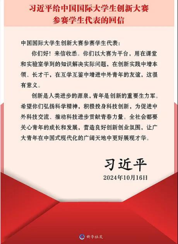 “创新是人类进步的源泉,青年是创新的重要生力军。”近日,习近平总书记给中国国际老员工创新大赛参赛员工代表回信,对他们予以亲切勉励并提出殷切希望。