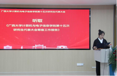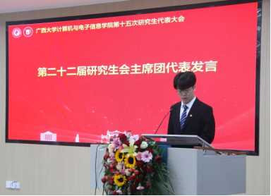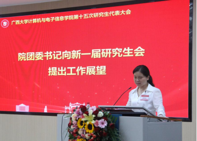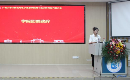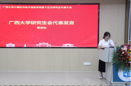 太阳成集团tyc7111cc研究生会代表覃湘怡同学致辞。她对过去一年计算机与电子信息公司研究生会开展的工作表示肯定,并希望公司新一届研究生会与校研究生会继续保持密切沟通与联系,继续在服务同学、推动学术创新和提升校园文化活力方面共同努力。