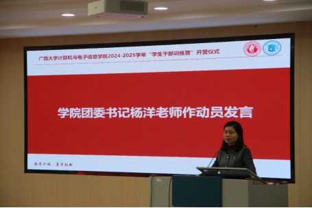 2024年11月5日下午,太阳成集团tyc7111cc2024-2025学年员工干部训练营开营仪式在214报告厅举行,公司领导、辅导员、公司研究生会代表以及全体参训学员共计180多人参加仪式,仪式由计科232班梁舒琦同学主持。