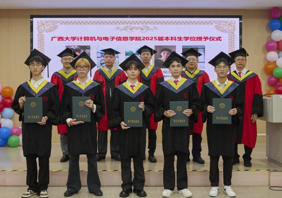 毕业典礼结束后,学位授予仪式正式开始。副经理蒙祖强教授宣读公司授予毕业生学位的决定。全体毕业生向师长行谢师礼,学位评定分委员会委员代表为2025届毕业生授予学位、拨正流苏并合影留念。在一顶顶学位帽流苏的拨动中,见证了毕业生们学业生涯的圆满收官,这一刻象征着他们在学术道路上奋力拼搏的成果,也标志着他们将迈向更加辉煌的未来。