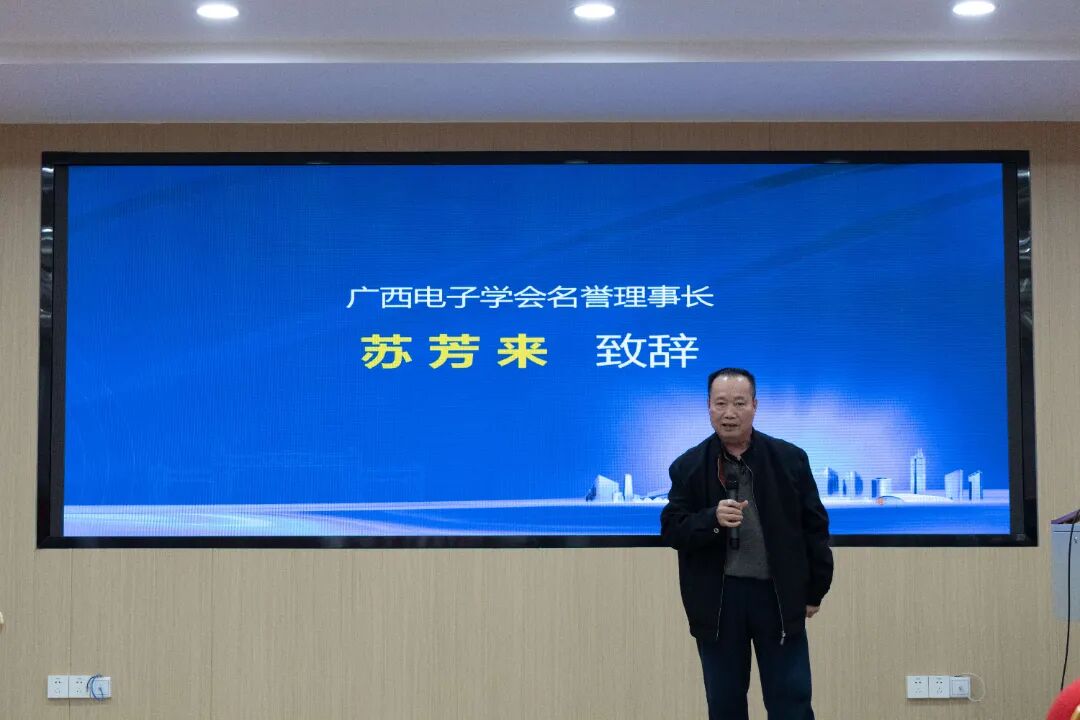 会议首先由广西电子学会名誉理事长苏芳来致词。他表示:人工智能专委会的成立,是广西电子学会积极响应国家及自治区关于加快人工智能发展的战略部署,旨在搭建一个集产学研用为一体的综合平台,促进区内外的技术交流与合作,加速人工智能技术的创新与应用,为广西乃至全国的经济社会发展贡献力量。