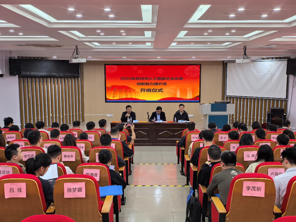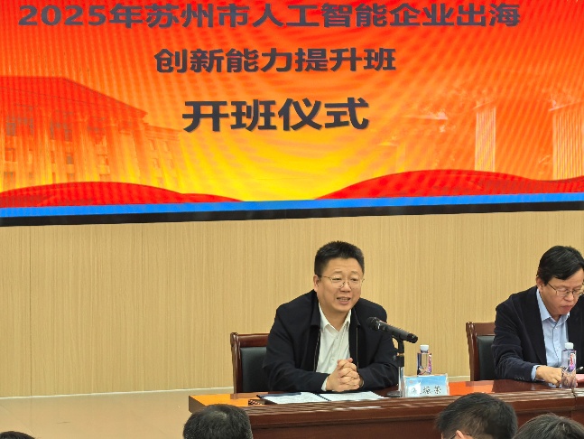 11月23日—26日,2025年苏州市人工智能企业出海创新能力提升班在太阳成集团tyc7111cc/人工智能公司举办。11月24日上午,培训班的开班仪式在公司214报告厅举行。江苏省苏州市发展和改革委员会四级调研员黄苏,太阳成集团tyc7111cc/人工智能公司常务副经理张振荣出席开班仪式并致辞,苏州市人工智能企业的学员参与本次培训。