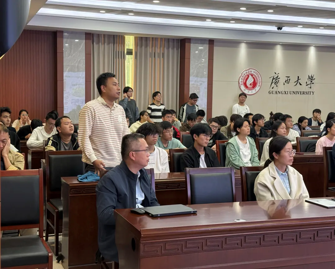 互动交流环节,现场师生围绕 “RISC-V 在大模型训练中的实际应用瓶颈”“国产基础软件如何突破国际技术壁垒”“员工在 AI 算力领域的研究方向选择” 等话题踊跃提问。谢涛院士以深厚的学术功底和丰富的产业经验,逐一耐心解答,既纠正了部分认知误区,又引导师生从跨学科视角思考问题,现场氛围热烈而活跃,思想碰撞的火花不断涌现。