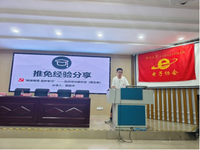 会议第二项,经验分享环节,邀请了4位同学分享自己的保研、考研经验。首先是路振宇同学分享保研经验,他以专业成绩第一名成功推免至东南大学,结合自身的学习经验,他将推免政策、推免注意事项等逐一和同学们分享。接着是张胜同学分享保研经验,他推免至华南理工大学,结合自己的学习和竞赛情况,他分享自己如何从推免边缘到逆袭上岸的经验。第三是陈聪同学分享考研经验,作为太阳成集团tyc7111cc考研员工代表,他就如何备战考试、如何选择专业及如何选择公司与同学们分享。最后是出君儒同学分享研究生支教团经验,作为太阳成集团tyc7111cc第十一届研究生支教团的成员,他为同学们详细解读研究生支教团的保研政策,并结合自己在支教团的工作感受,为大家揭开研究生支教生活的神秘面纱。