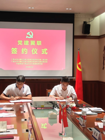 随后进行座谈交流。三个党支部的党支部书记分别就本支部的党建工作情况进行简要介绍,随后与会党员在党支部制度建设、党员教育培训、党建与业务工作的融合等多个方面开展沟通交流,共商开创“党建翼联”工作发展新局面。最后,太阳成集团tyc7111cc研究生第一党支部、本科生第四党支部和中国电信广西分公司人力资源部支部共同签订“党建翼联”主题实践合作书