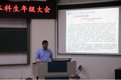 首先,邓珍琪老师对上一年同学们的学习情况进行了总结,肯定了同学们取得的成绩,分析了同学们在学习上存在的不足,要求同学们提高思想认识、端正学习态度,希望党员和员工干部充分发挥先锋模范作用,带领身边的同学认真做好学习、学科竞赛实践、实验室和宿舍卫生等各项工作。接着,他对同学们进行防网络电信诈骗和安全教育,希望同学们切实提高安全防范意识,加强个人健康管理。