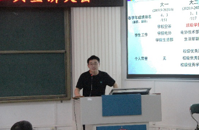 然后,2019级王志鹏朱硕隆同学分享了个人学习工作经历、学习方法、科研竞赛、社会实践、员工工作服务、考研、就业等情况,并给同学们提出一些建议。