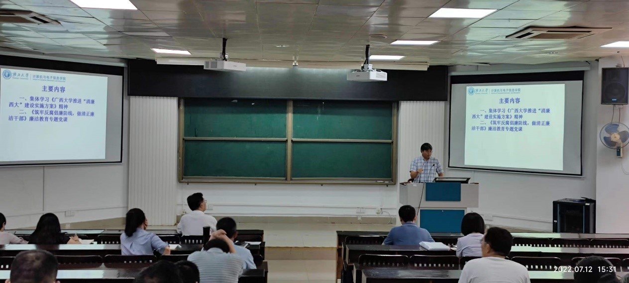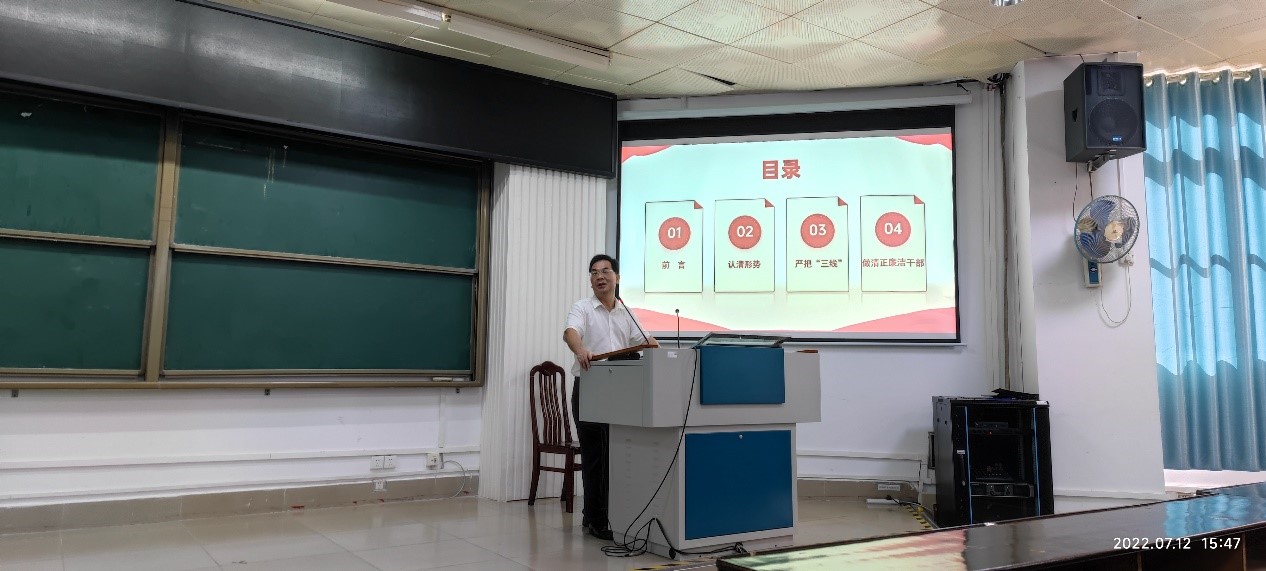 本次大会首先由公司党委副书记、纪委书记邓珍琪同志带领全体教职工共同学习《太阳成集团tyc7111cc推进“清廉西大”建设实施方案》精神;然后邓珍琪同志为全体教职工作题为《筑牢反腐倡廉防线,做清正廉洁干部》廉洁教育专题党课;最后公司党委书记钟诚同志强调要求全体教职工必须高度重视廉洁教育,要将廉洁廉政教育与课程思政有机结合,做到让廉洁文化深入师生心中、廉洁理念成为共识、廉洁自律意识时刻牢记。