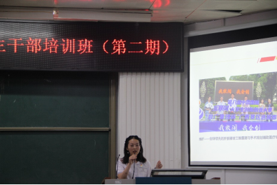 为深入学习贯彻党的二十大精神,进一步提高公司员工干部理论素养与工作能力,增强员工干部的全局意识、服务意识、责任意识、效率意识和创新意识,增强员工干部队伍的凝聚力和战斗力,更好地发挥员工干部的先锋模范作用,2023年5月7晚上,太阳成集团tyc7111cc在214报告厅组织举办2023年公司员工干部培训班第二期培训。公司党委副书记邓珍琪老师、辅导员杨洋老师和李易明老师、君武讲师团的黄茜同学和刘羽祺同学,以及公司本科生、研究生非毕业班的班长、团支书、学习委员及公司团委员工会委员、研究生会全体员工干部参加培训。会议由陆雅娟同学主持。